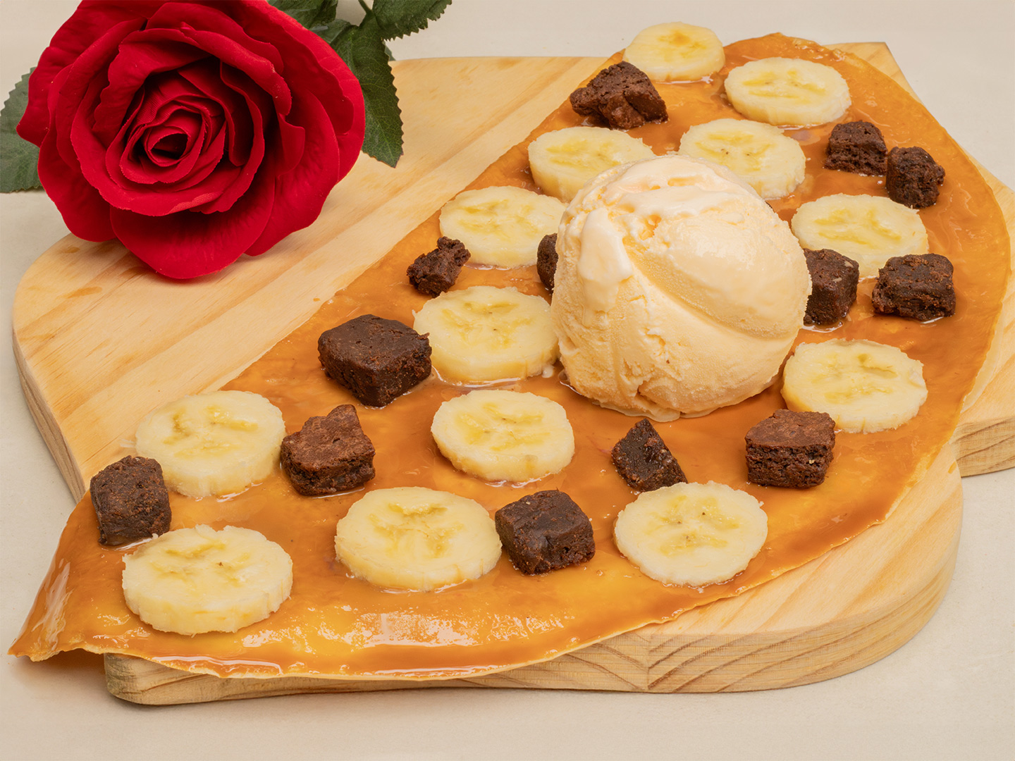 El precio de este producto incluye únicamente el crepe relleno con dulce de leche acompañado de plátano, brownie y helado de vainilla.