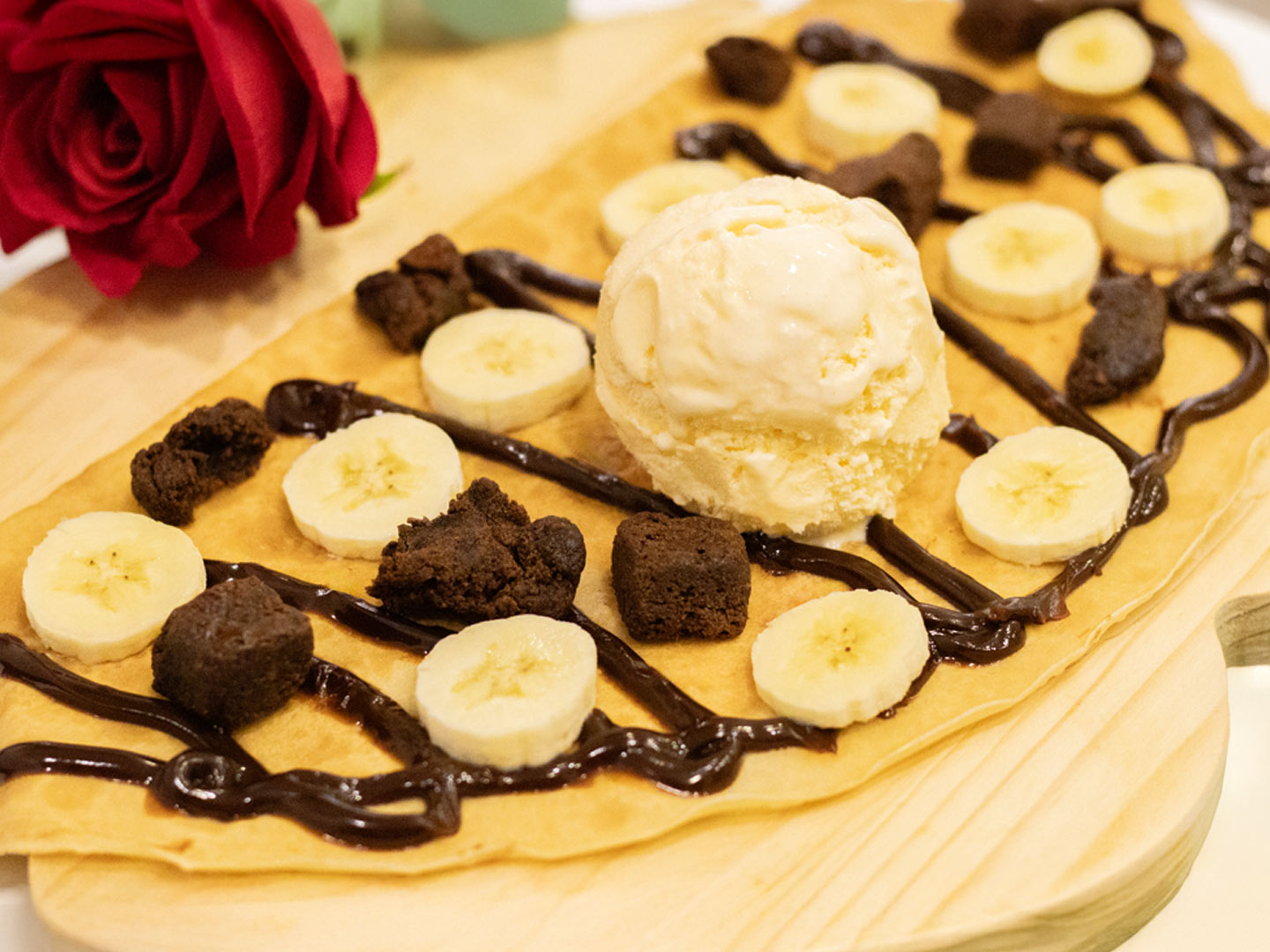 El precio de este producto incluye únicamente el crepe relleno con fudge acompañado de plátano, brownie y helado de vainilla.