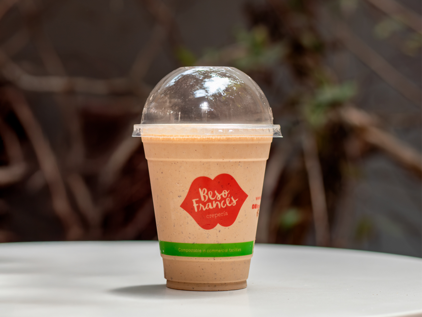 El precio de este producto incluye únicamente el crepe relleno con mantequilla de maní y cacao. Los toppings mostrados en la imagen son referenciales y tienen un costo adicional.