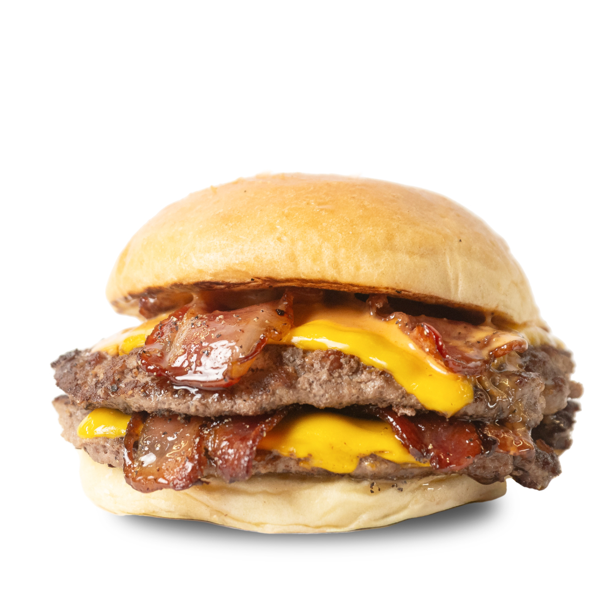 Double patty 100g c/u, doble queso cheddar, cebolla caramelizada, smoked bacon y salsa Big Boy.