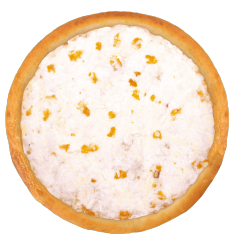 Piña, jamón, 3 quesos: mozzarella, parmesano y cheddar, bordes crujientes y horneada a la piedra.