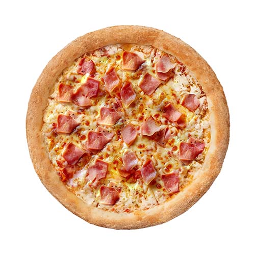Pizza 30 cm con jamón inglés, mix de quesos y horneada a la piedra.