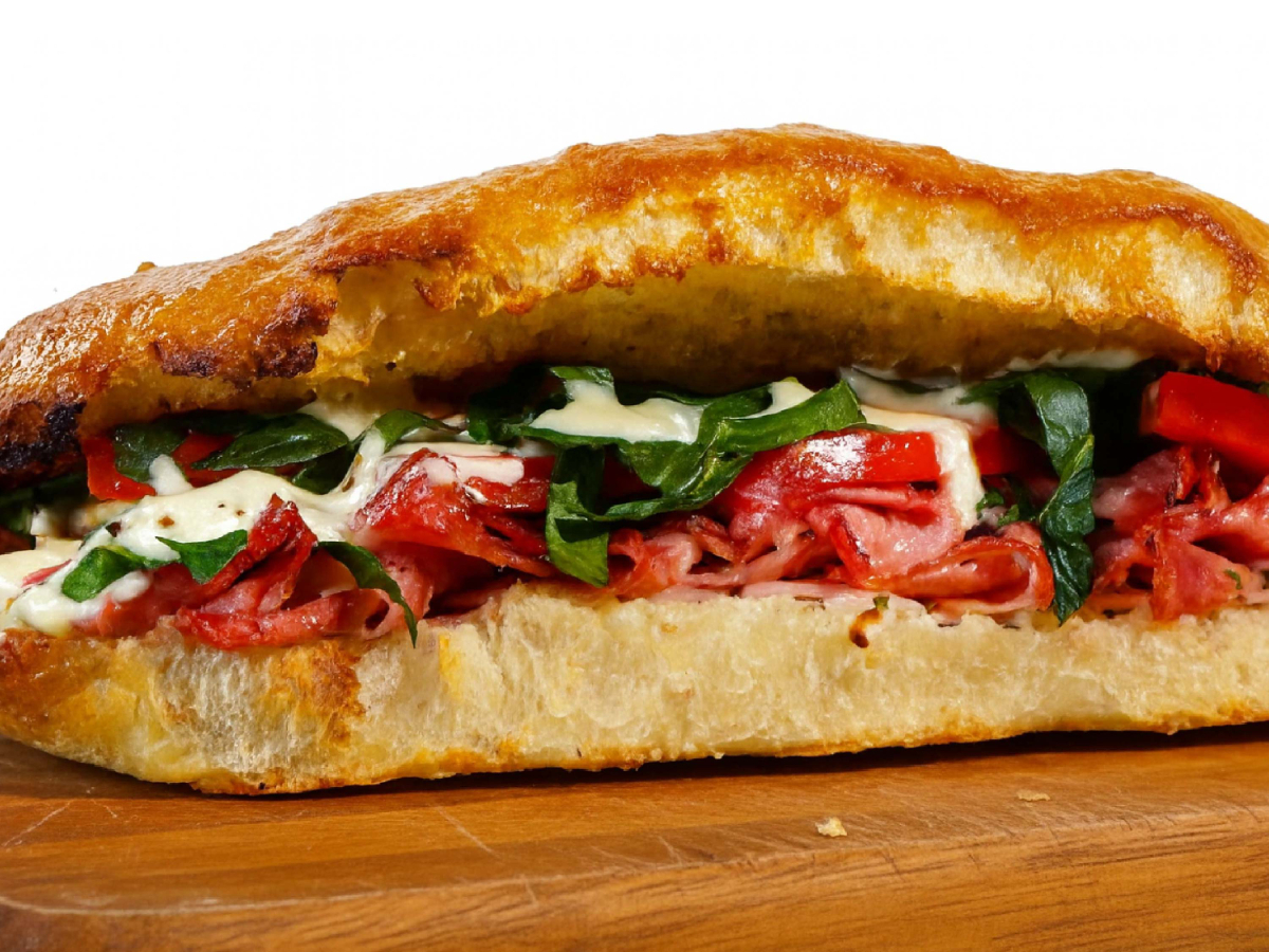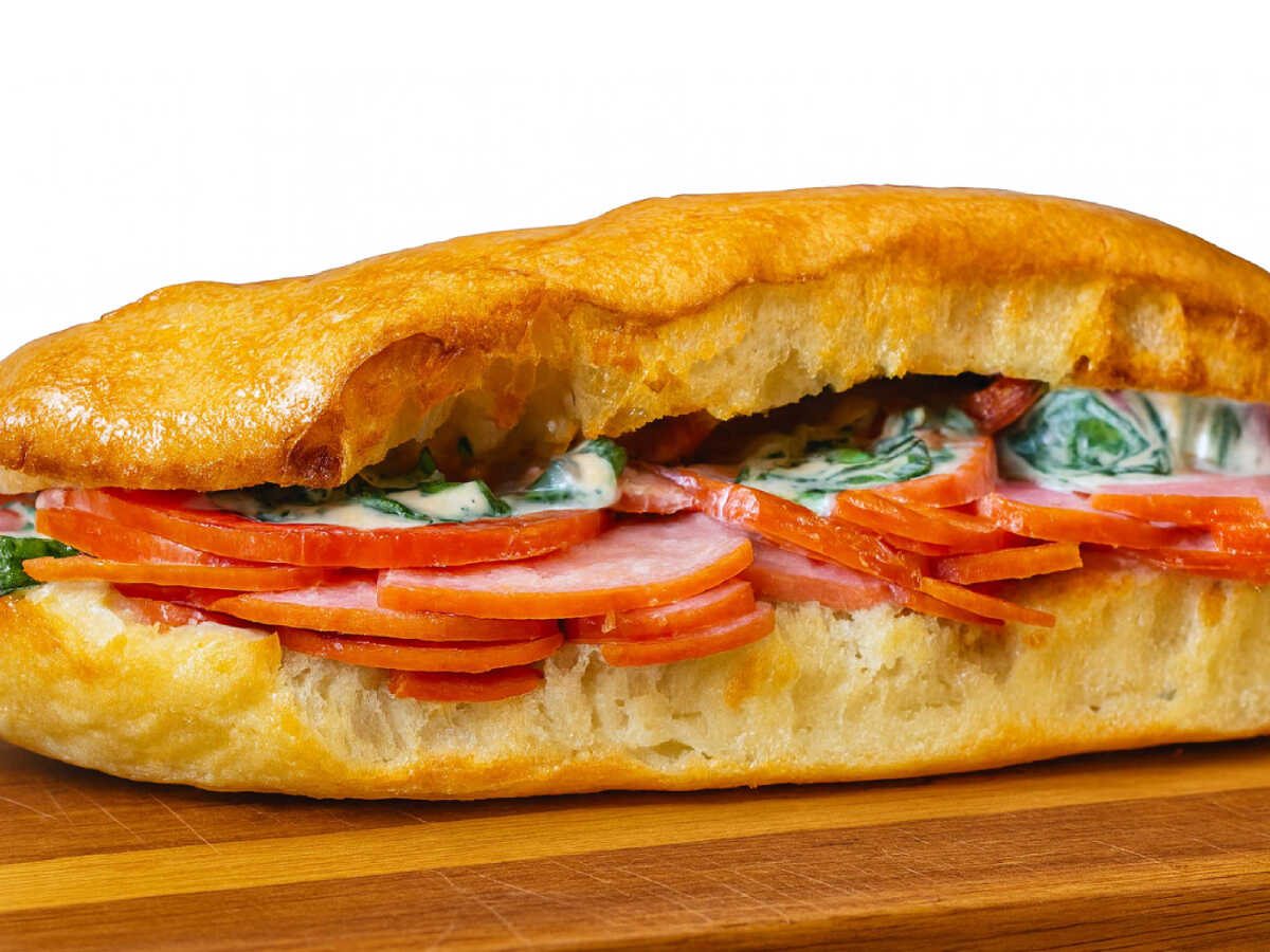 Mezcla perfecta entre pizza y sándwich: masa doradita con lomito ahumado, jamón inglés, tomate, mozzarella y el toque fresco de crema alioli.