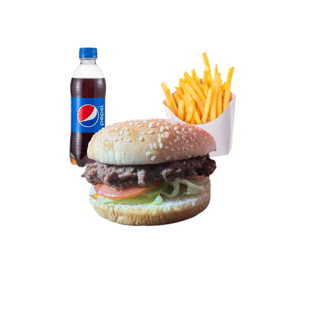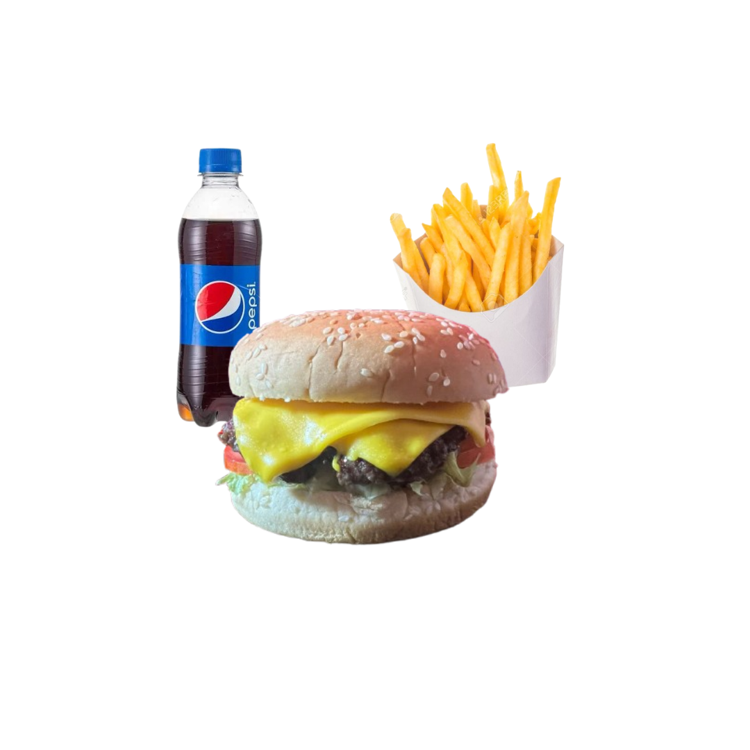 Burguer, queso, tomate, lechuga, cremas y 1 papa regular.