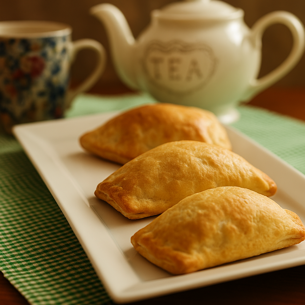 Masa de hojaldre con relleno de jamón inglés, queso Edam y orégano fresco.