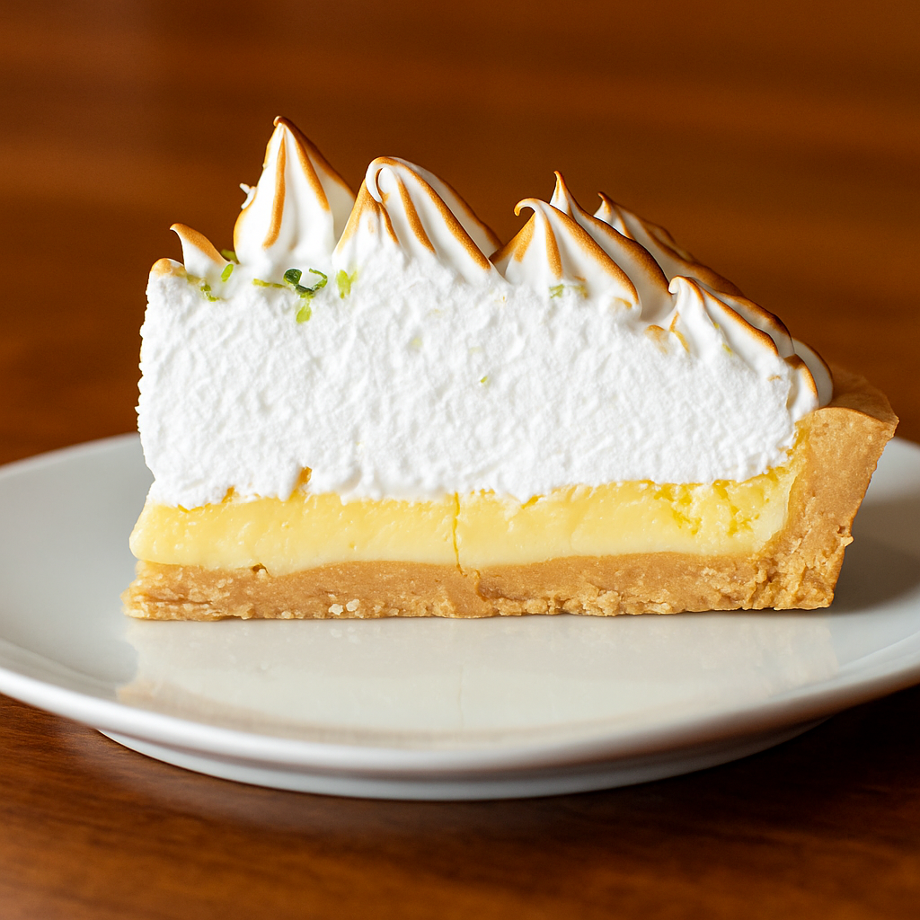 Tarta de masa quebrada rellena con crema de limón y cubierta con merengue horneado.