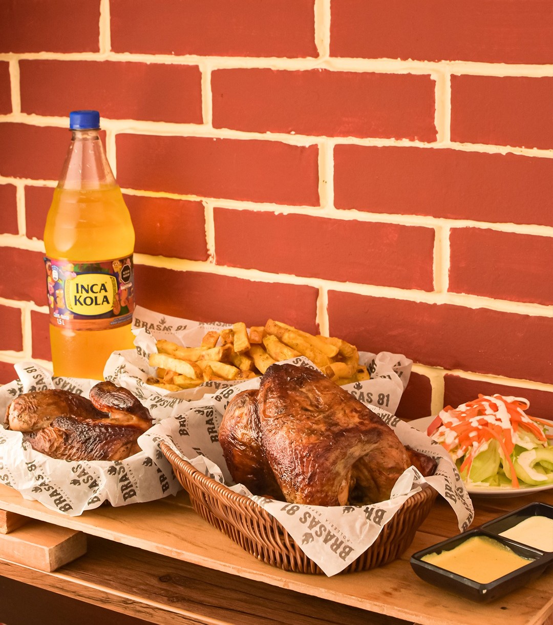 1 Pollo más Medio Pollo y Papas Nativas