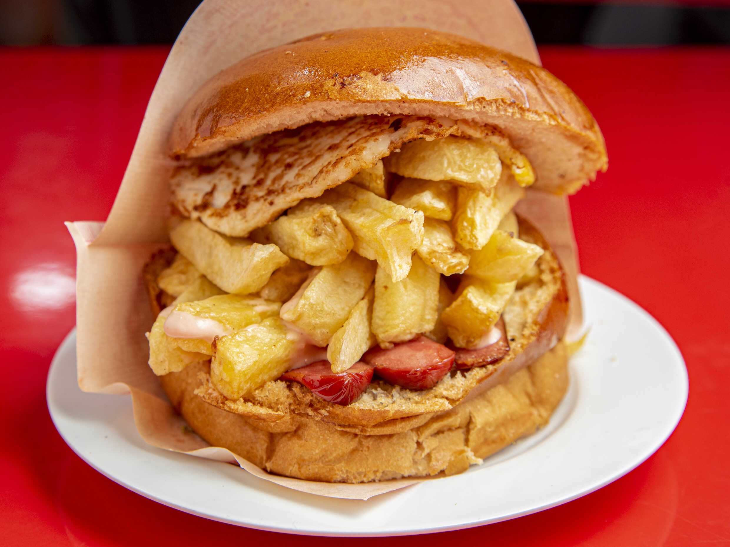 Salchipapa con Chorizo, Huevo y Queso
