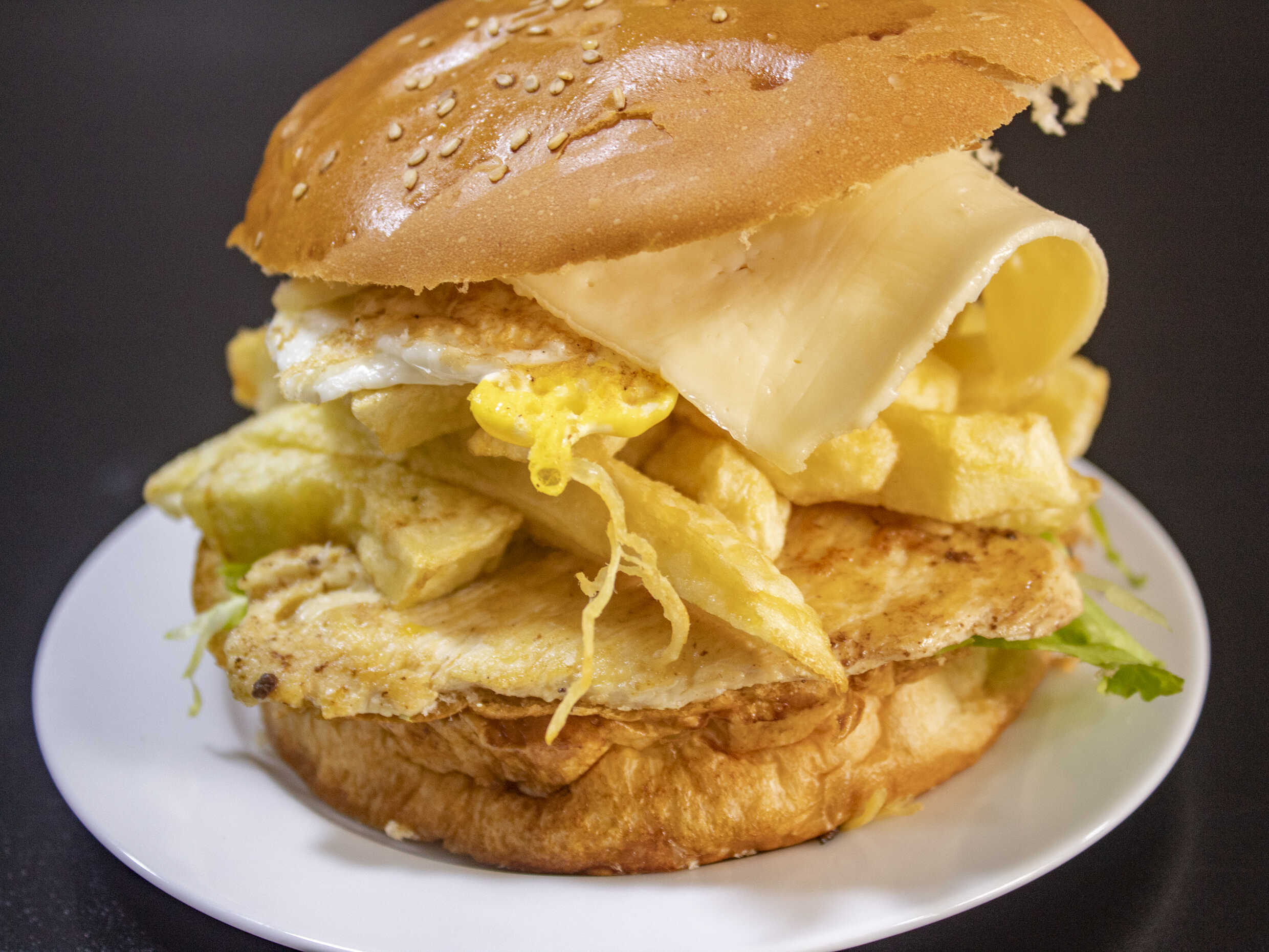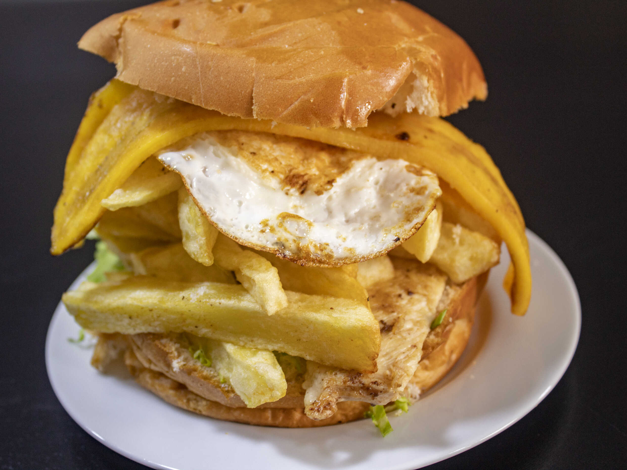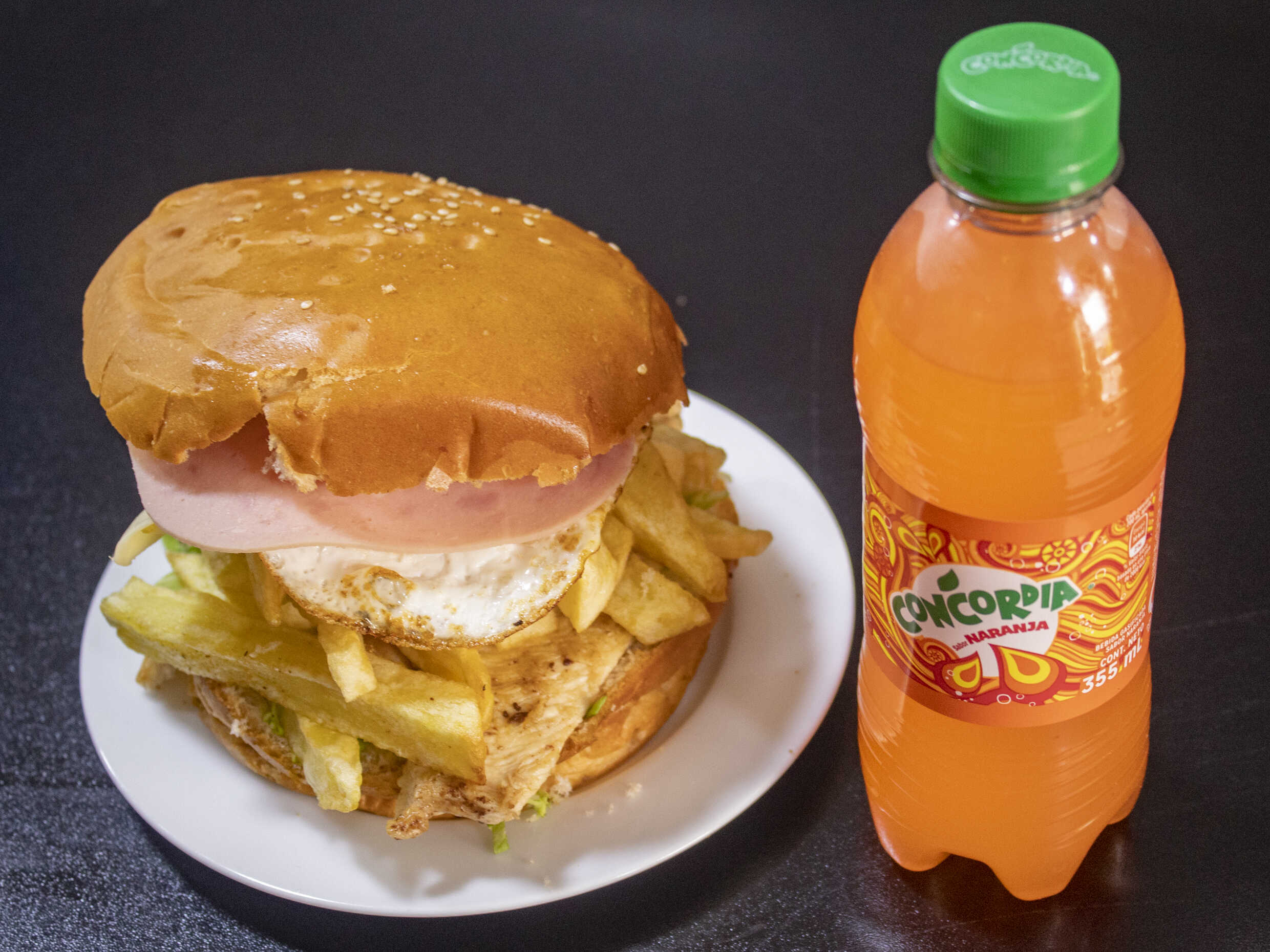 1 Filete, 1 jamón, 1 queso, 1 huevo frito y 1 Pepsi 335 ml.