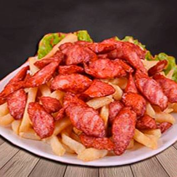 Chorizo parrillero, papas fritas, ensalada fresca y cremas.