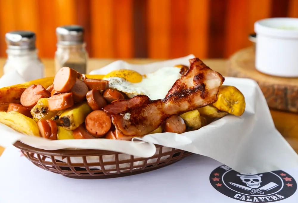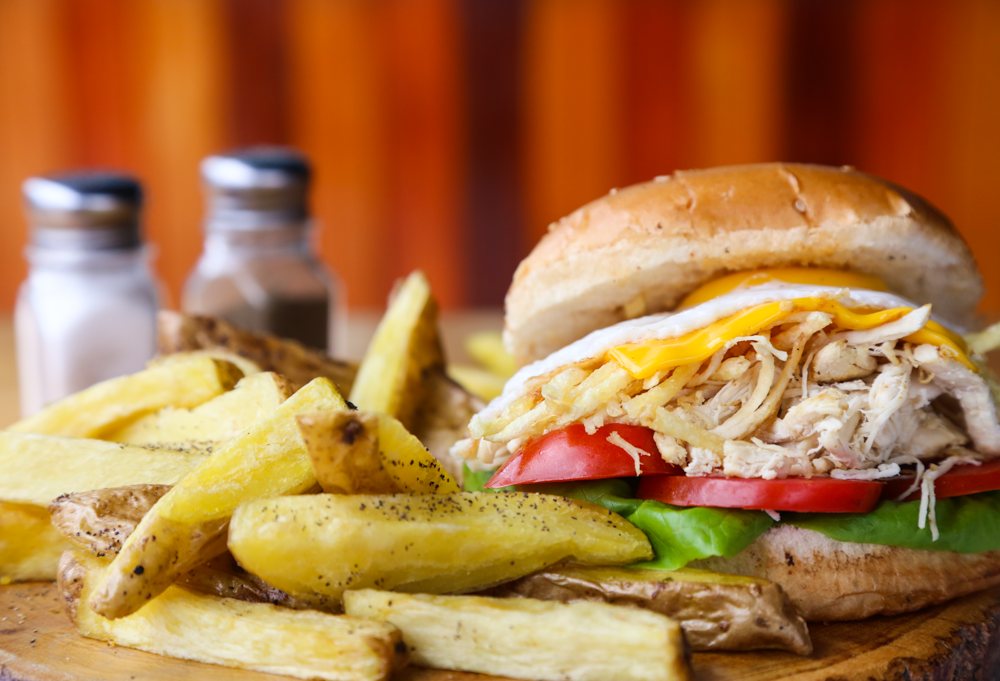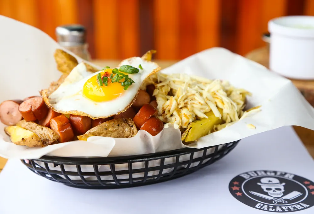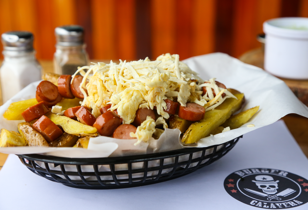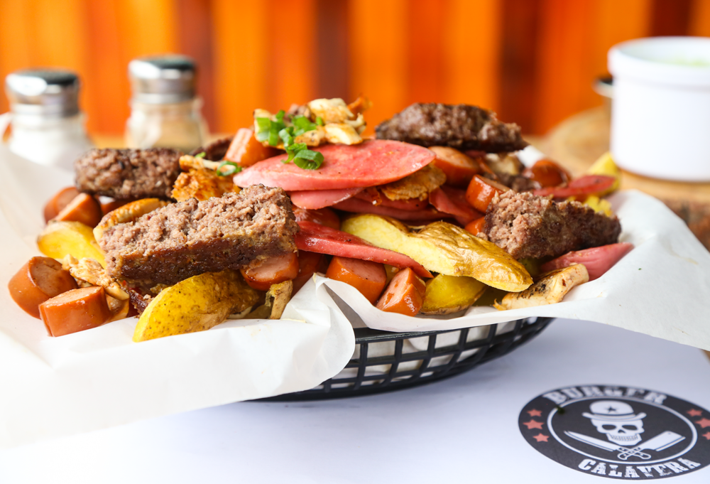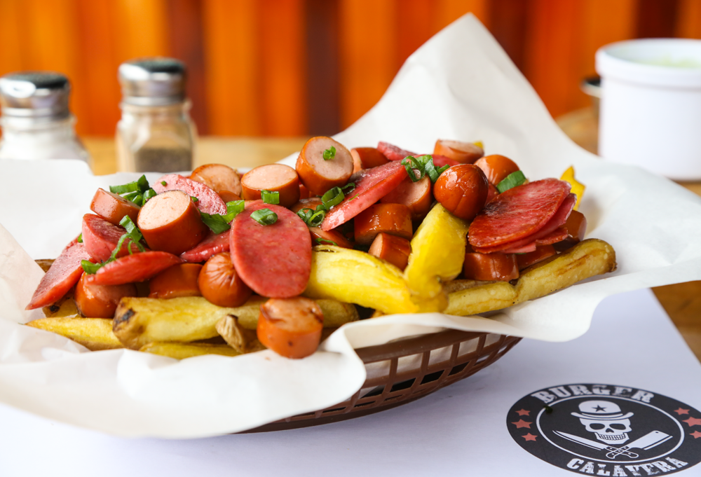 Salchipapa, hamburguesa, chorizo, pollo deshilachado, queso y huevo frito.