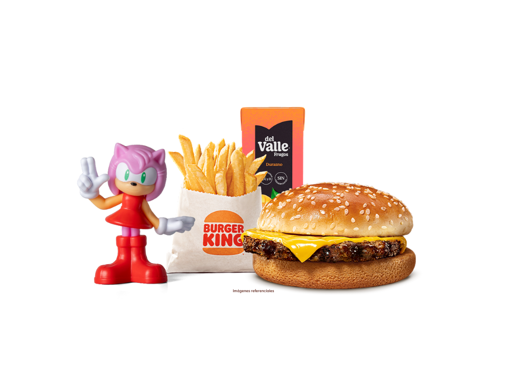 1 Hamburguesa con Queso Junior, 1 Papa King Junior, 1 Bebida Personal y 1 Juguete Sorpresa