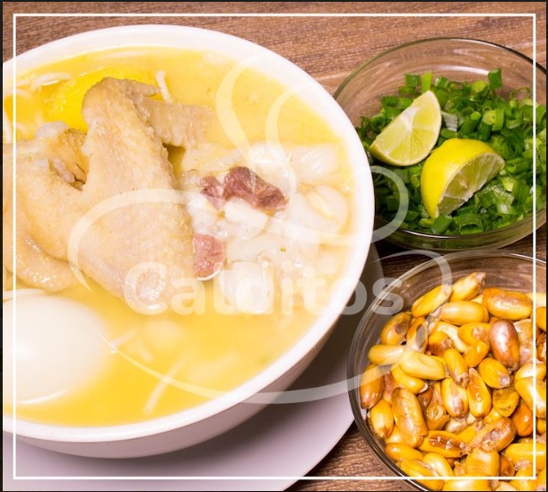Combinación perfecta de caldo de gallina y caldo de mote.