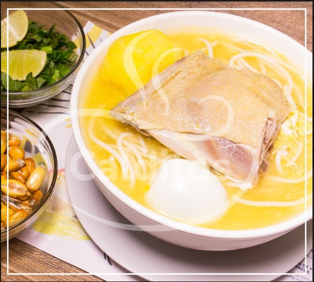 Deliciosa sustancia de gallina criolla con una jugosa presa de gallina y 1 huevo.