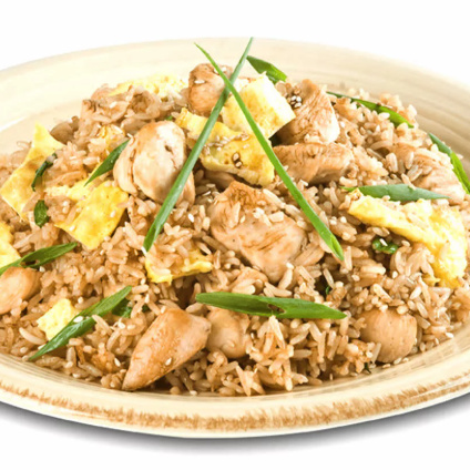 Clásico arroz chaufa al estilo peruano, salteado en wok con trozos de pollo jugoso, huevo, cebolla china y sillao. un sabor casero e irresistible.