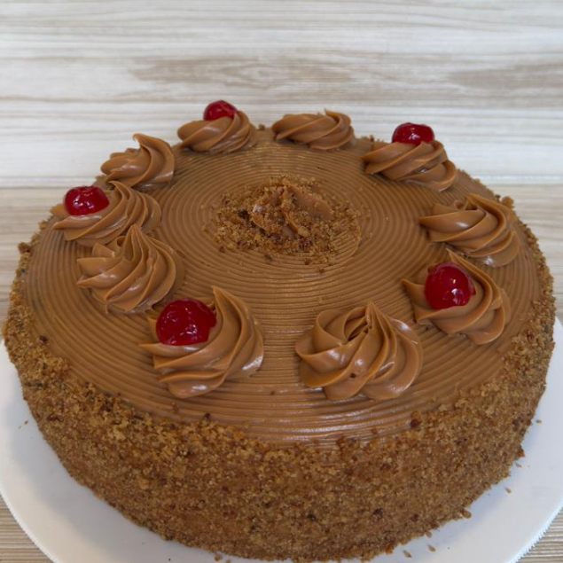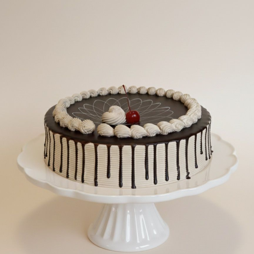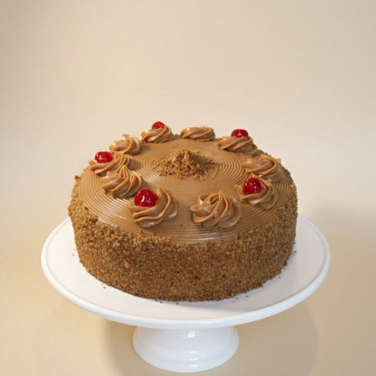 Delicadas capas de bizcocho bañadas en café, intercaladas con crema sabor café y ganache de chocolate.