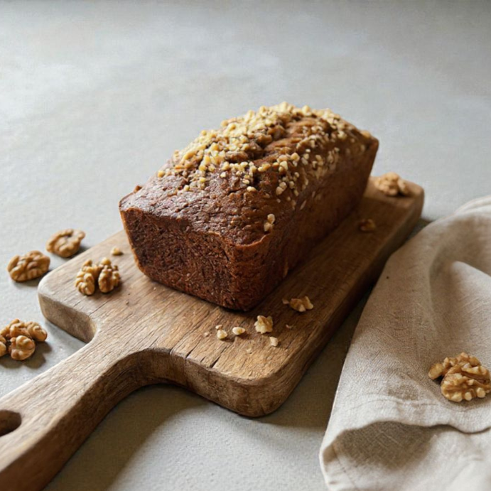 Esponjoso queque artesanal, elaborado con plátano que aporta un dulzor natural y textura suave.