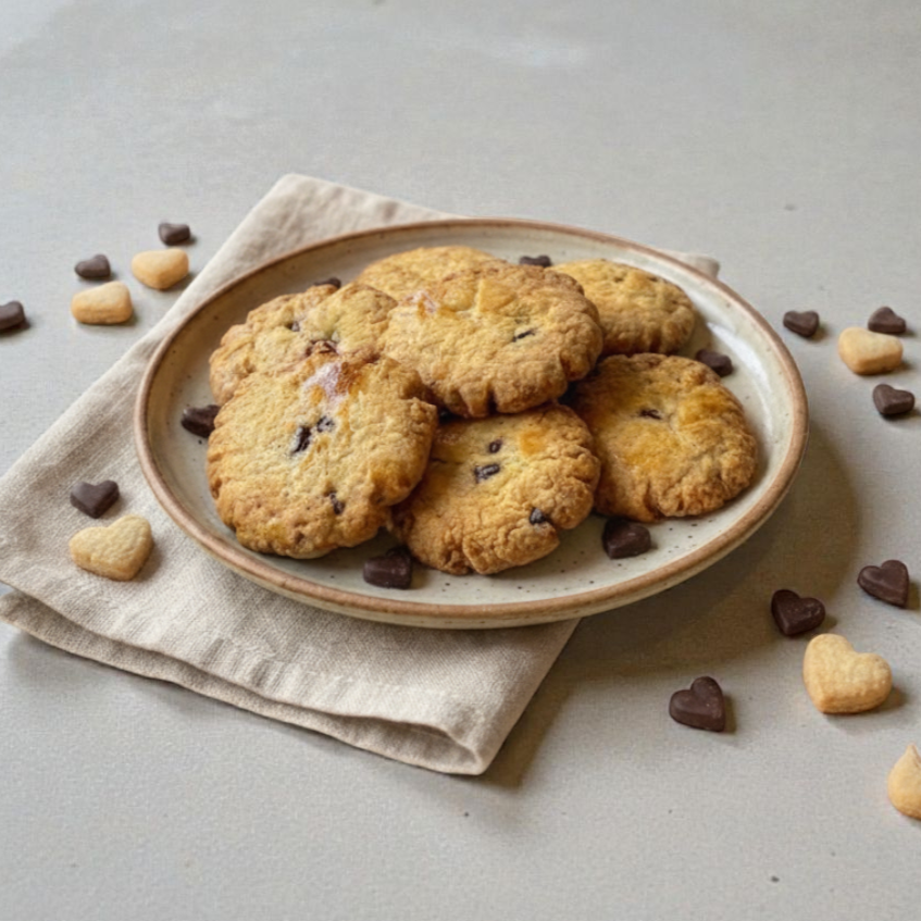 Delicadas galletitas con suaves chispas de chocolate, una combinación clásica y deliciosa.