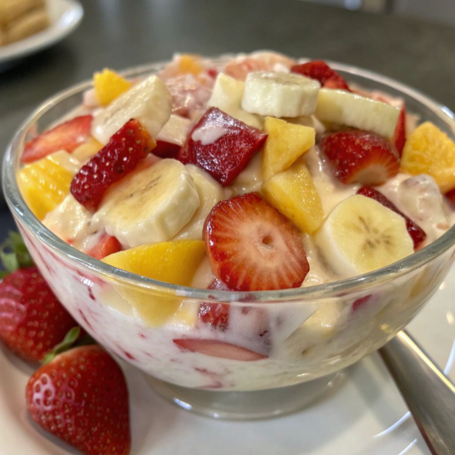 Deliciosa frutas de estación, servida con suave yogurt y cereal crocante.