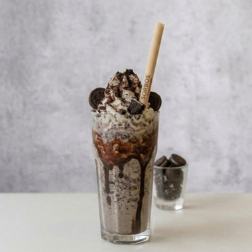 Cremoso batido de helado y galletas oreo, dulce, refrescante y lleno de sabor.