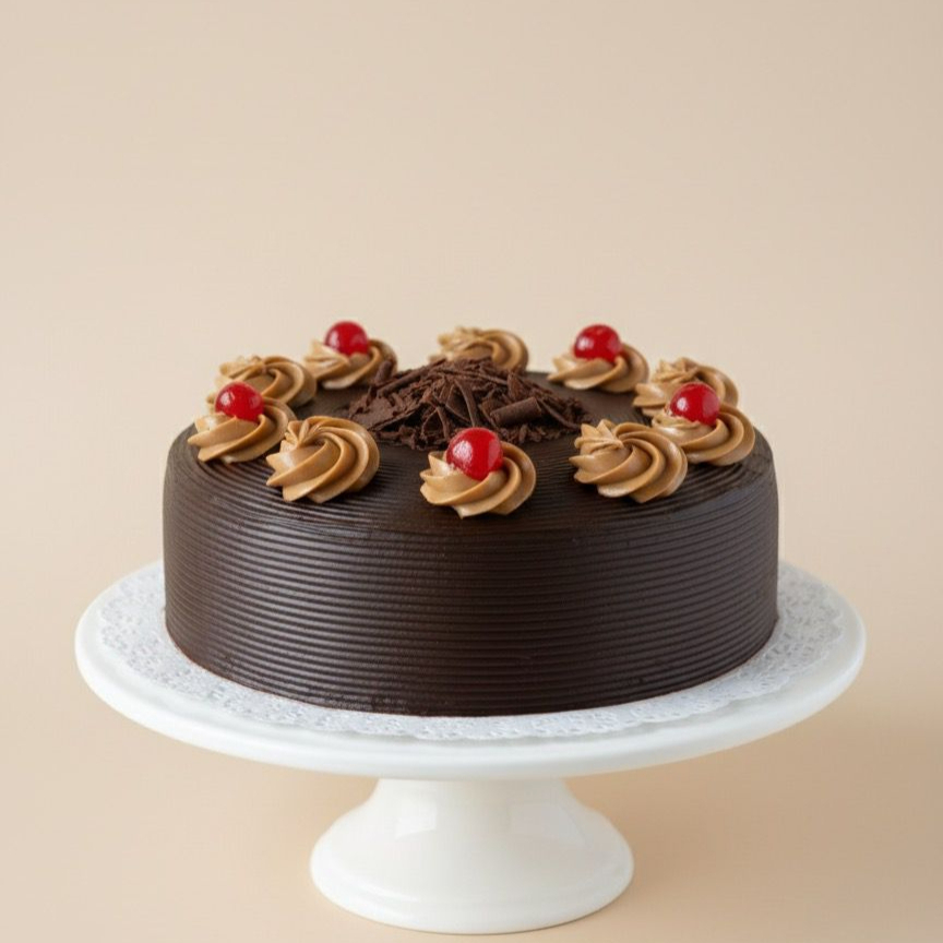 Delicadas capas de bizcocho bañadas en café, intercaladas con crema sabor café y ganache de chocolate.