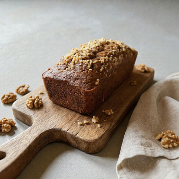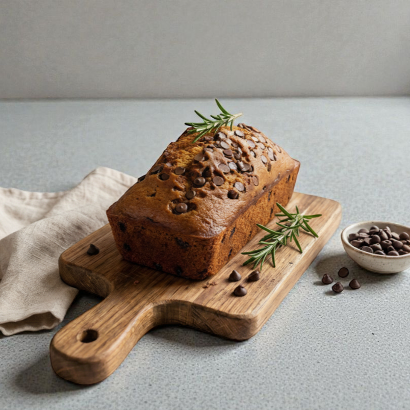 Esponjoso queque artesanal, elaborado con plátano que aporta un dulzor natural y textura suave.