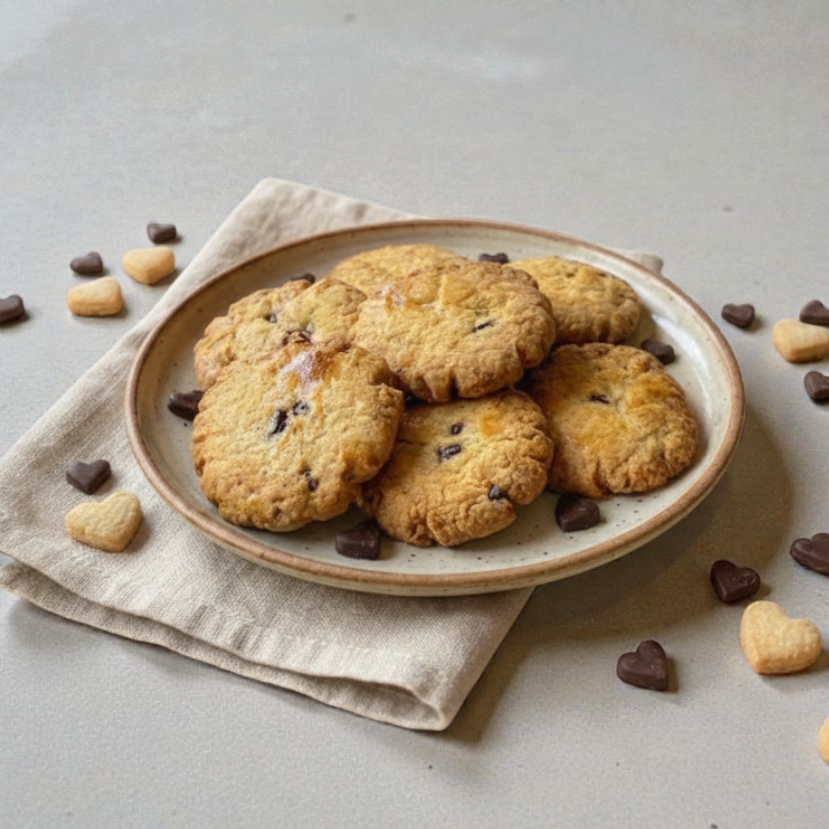 Delicadas galletitas con suaves chispas de chocolate, una combinación clásica y deliciosa.