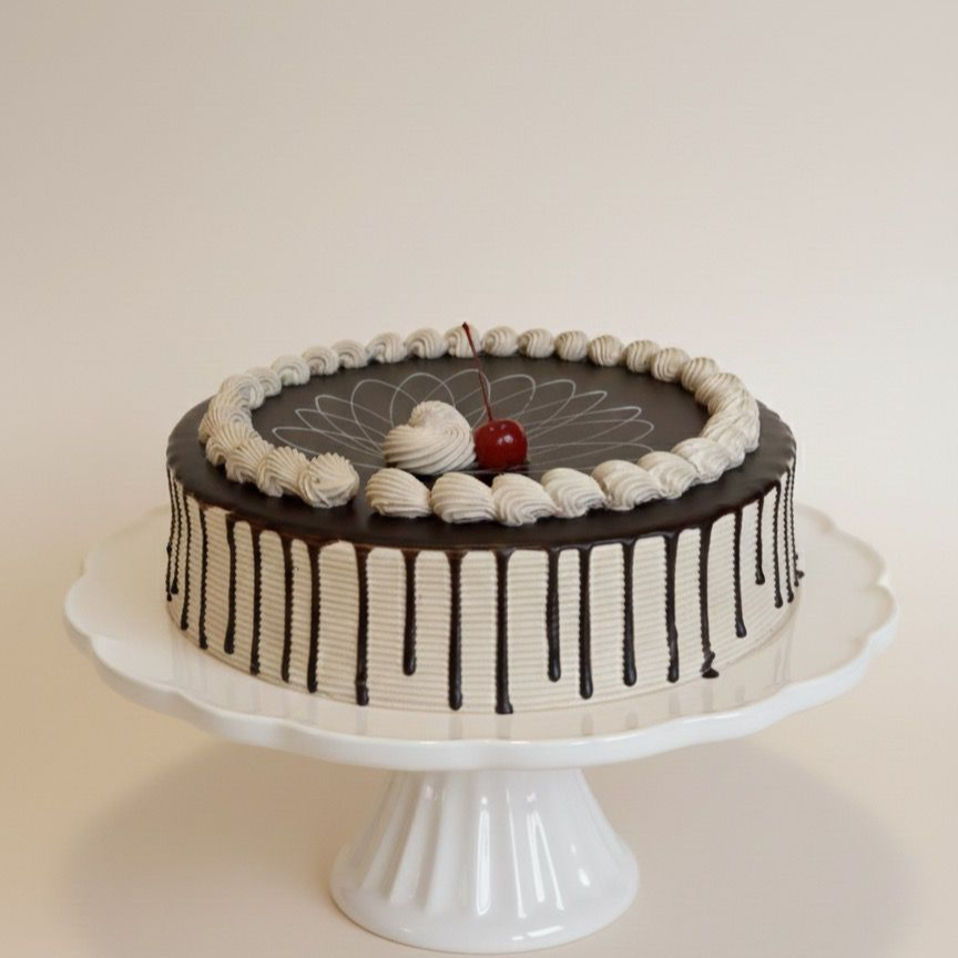 Bizcochuelo embebido en jarabe de leche sabor café y cubierto en chantilly de café.
