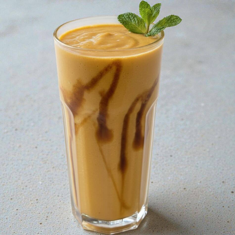Cremoso y nutritivo batido de mango natural con leche, polen, kiwicha, chía y miel.