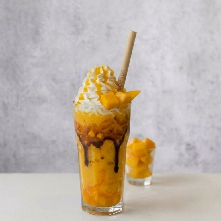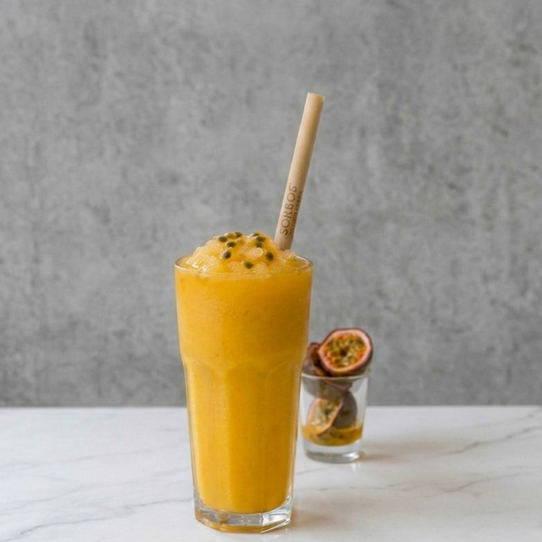 Fruta natural a tu preferencia, finamente batida con hielo hasta lograr una textura sedosa y vibrante.