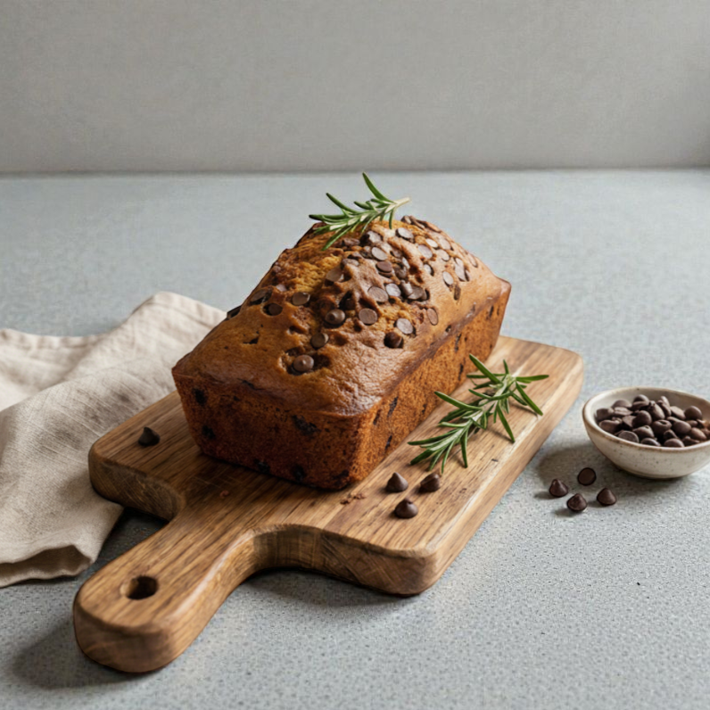 Esponjoso queque artesanal, elaborado con plátano que aporta un dulzor natural y textura suave.