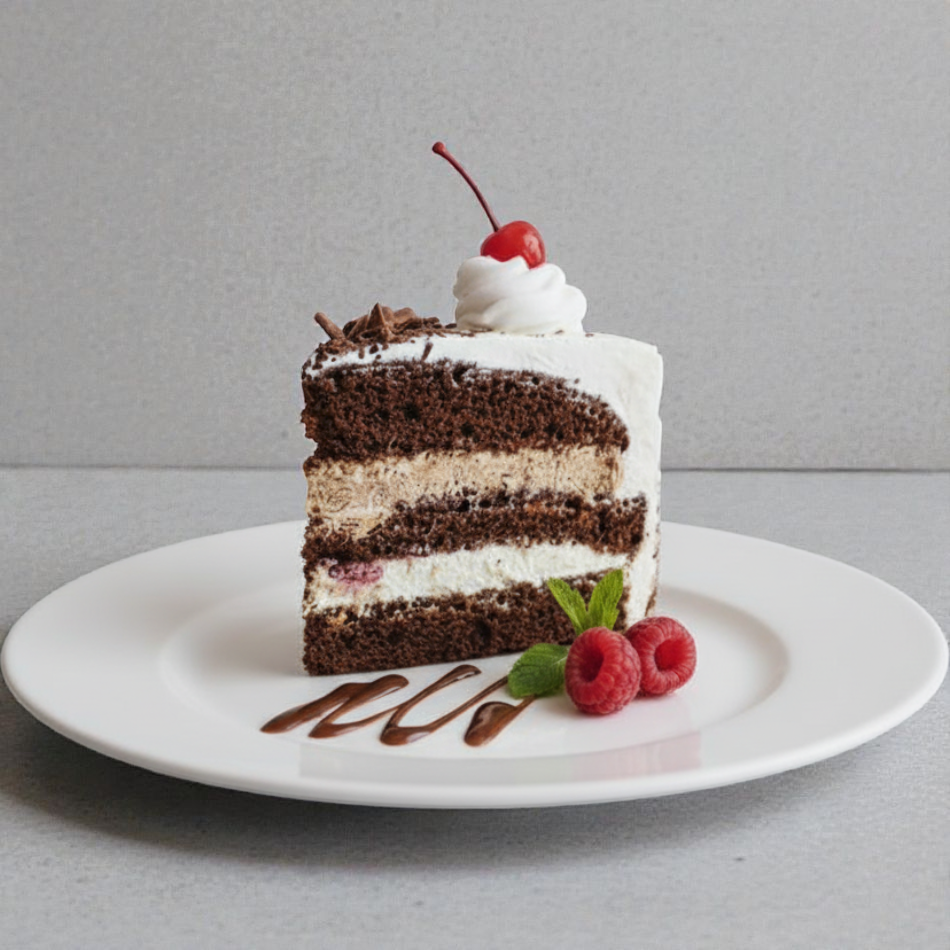 Delicadas capas de bizcocho bañadas en café, intercaladas con crema sabor café y ganache de chocolate.
