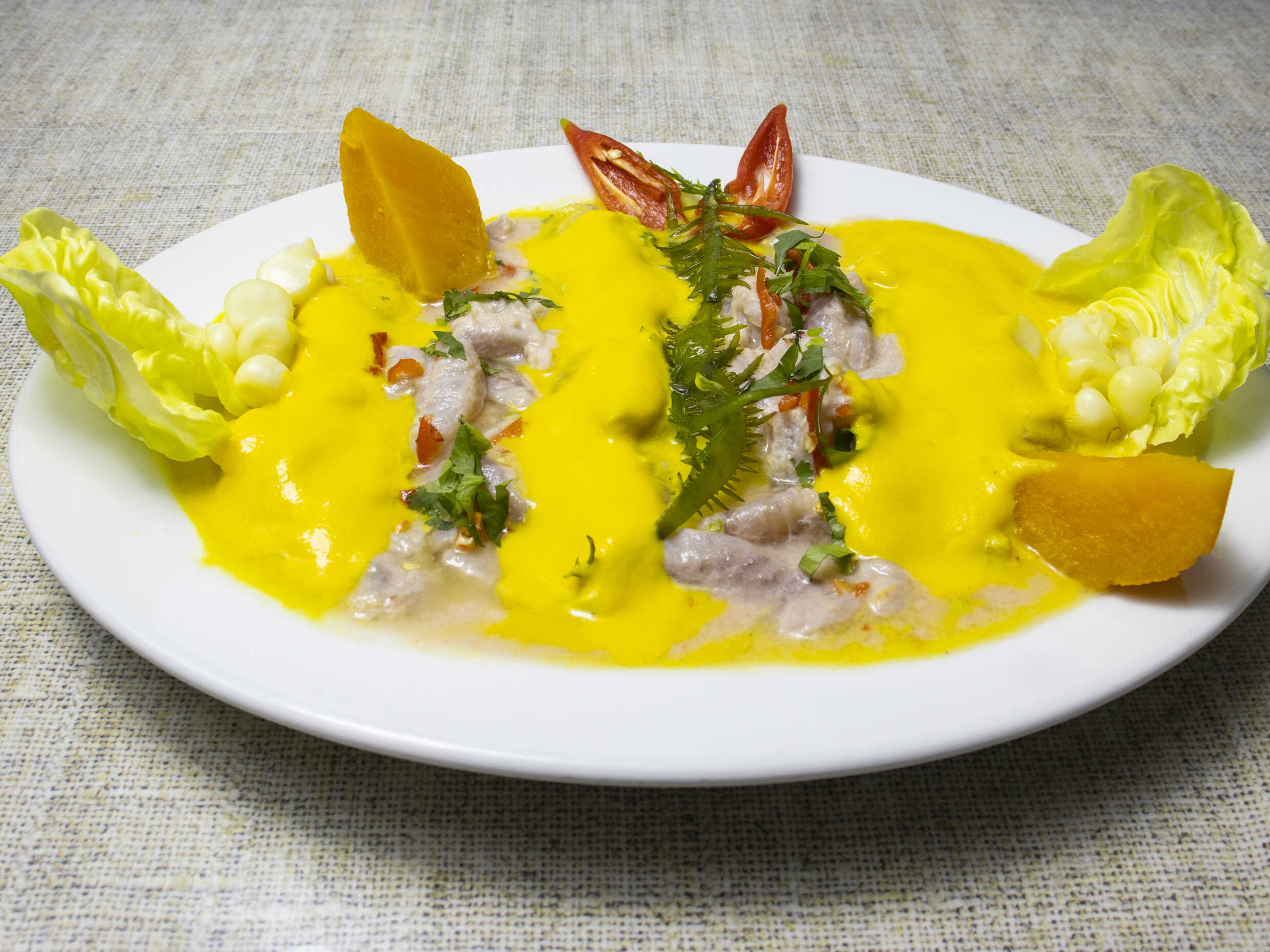 Tiradito con dos cremas especiales natural y crema de ají amarillo deliciosa combinación.