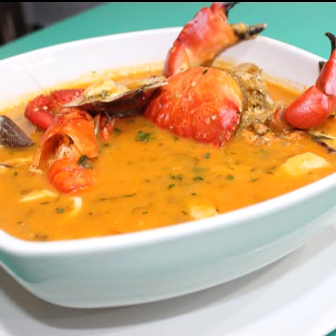 Filete de pescado, cangrejo y mariscos; papa amarilla, arroz, huevo, y leche.