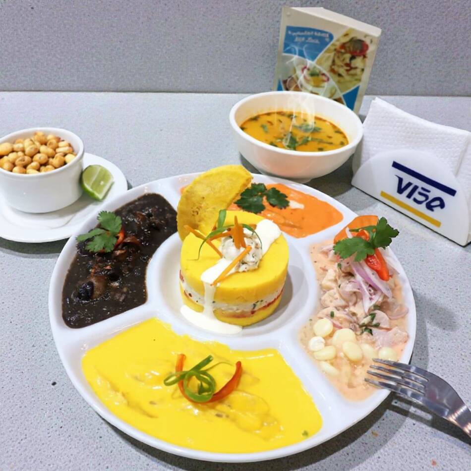Plato para 2 personas, consiste de chaufa de mariscos, choclo, chicharrón de pota, arroz con mariscos, chicharrón de pescado y aguadito de pescado.