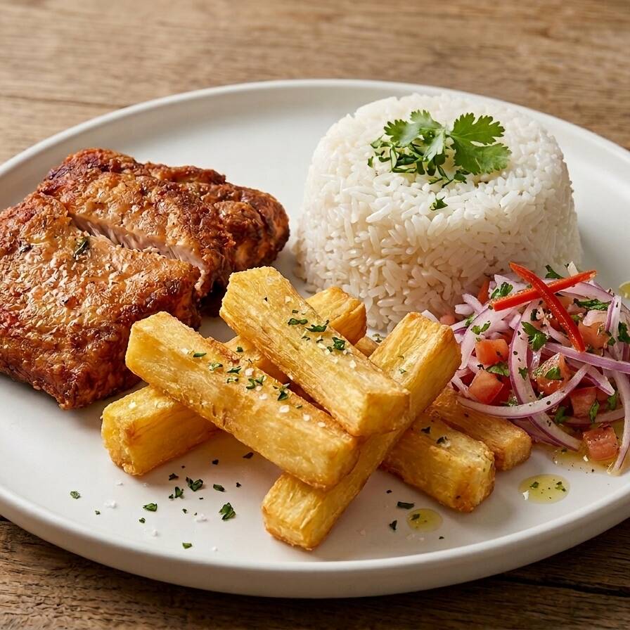 Filete de Pescado con Arroz y Yuca