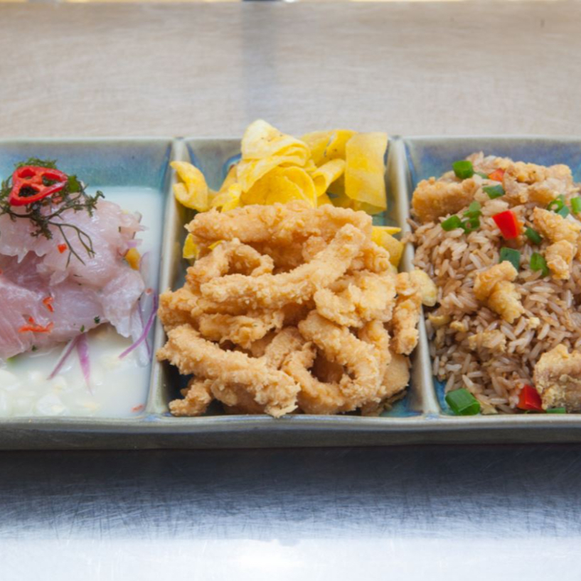 Arroz Marisco + Ceviche Pescado + Chicharrón Pota
