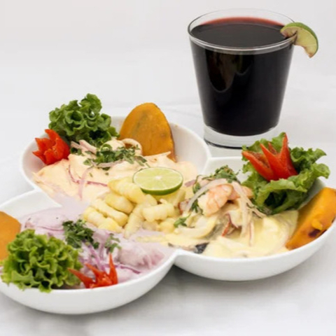 Refrescante ceviche combinado con el clásico caldo de pescado, ideal para revivir el cuerpo.