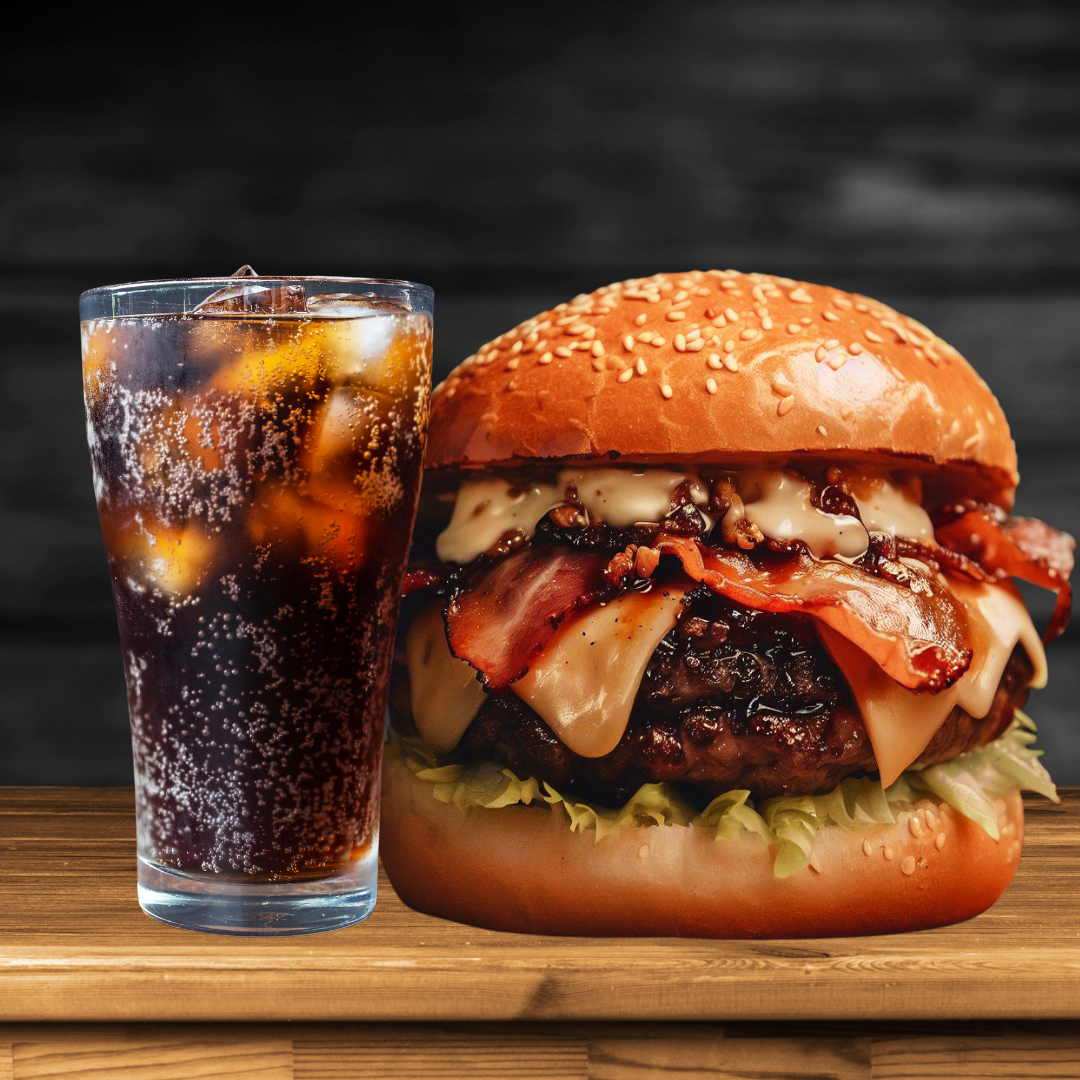Burger artesanal (más de 200gr) con deliciosos tocinos, quesos derretidos, cebolla caramelizada y lechuga hidropónica servido en pan brioche artesanal