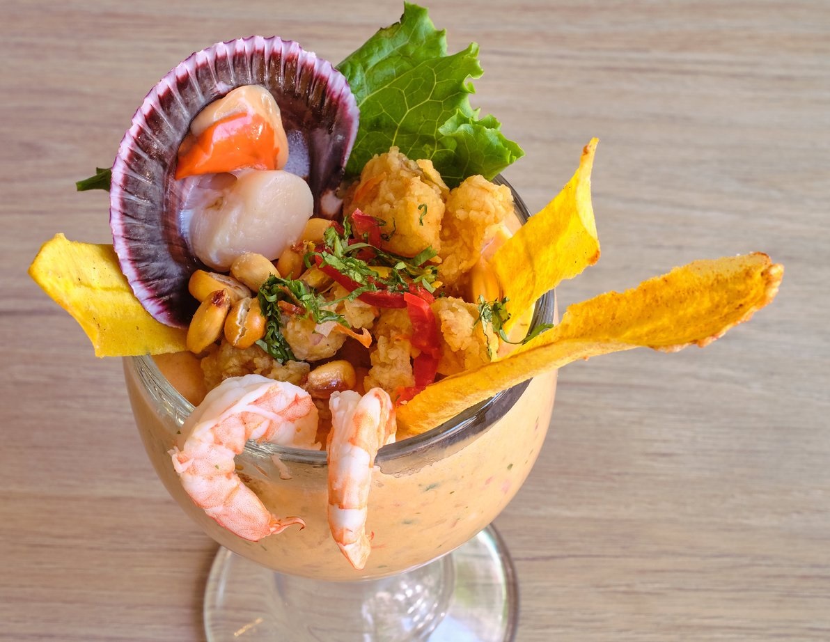 Arma tu dúo con los siguientes platos: arroz con mariscos, chaufa de mariscos, ceviche de pescado, ceviche mixto, chicharrón de pota, leche de tigre y jalea de pescado.
