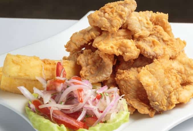 Trozos de pescado más yuca, tártara y criolla.