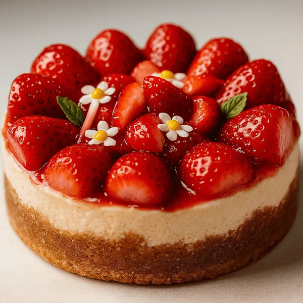 Una mermelada casera de fresas recubre tu cheesecake NY de puro queso crema horneado sobre crocante base de galleta de vainilla. Molde de 13 cm, 4 porciones.