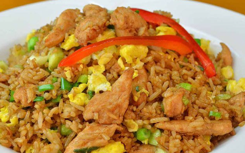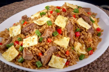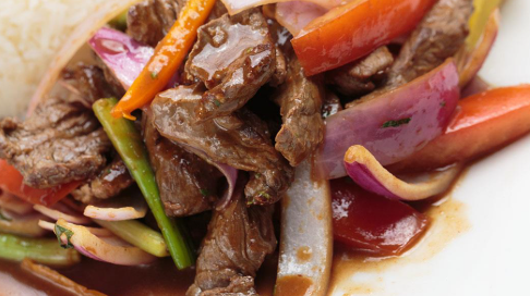 135 g De chicharrón, pan, camote y sarsa criolla.