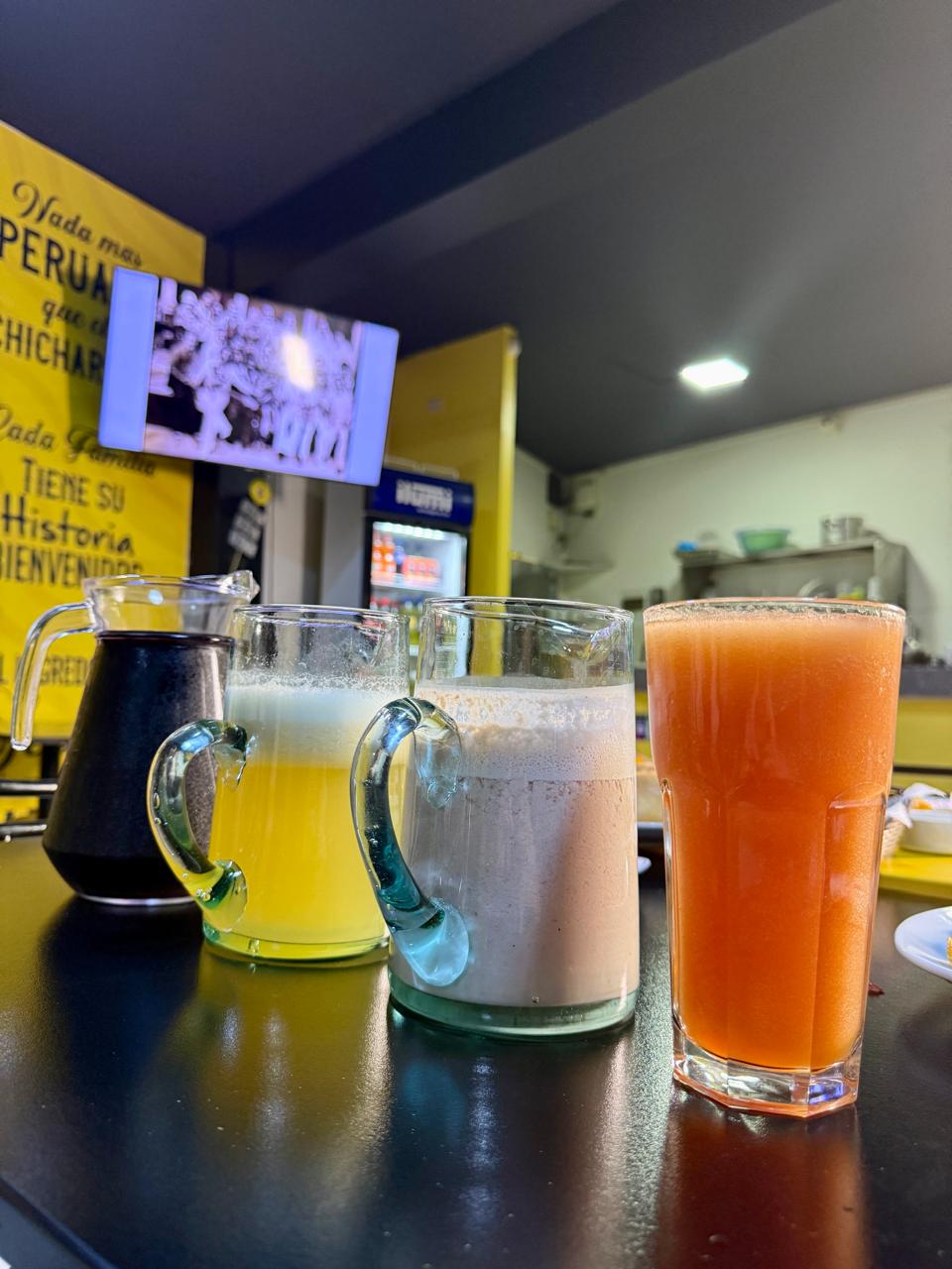 1/2 kg De chicharrón con 2 vasos de chicha o 2 cafés más 4 panes más 2 tamales.