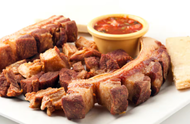 1 kg De chicharrón con 4 vasos de chicha o 4 cafés más 6 panes más 2 tamales.
