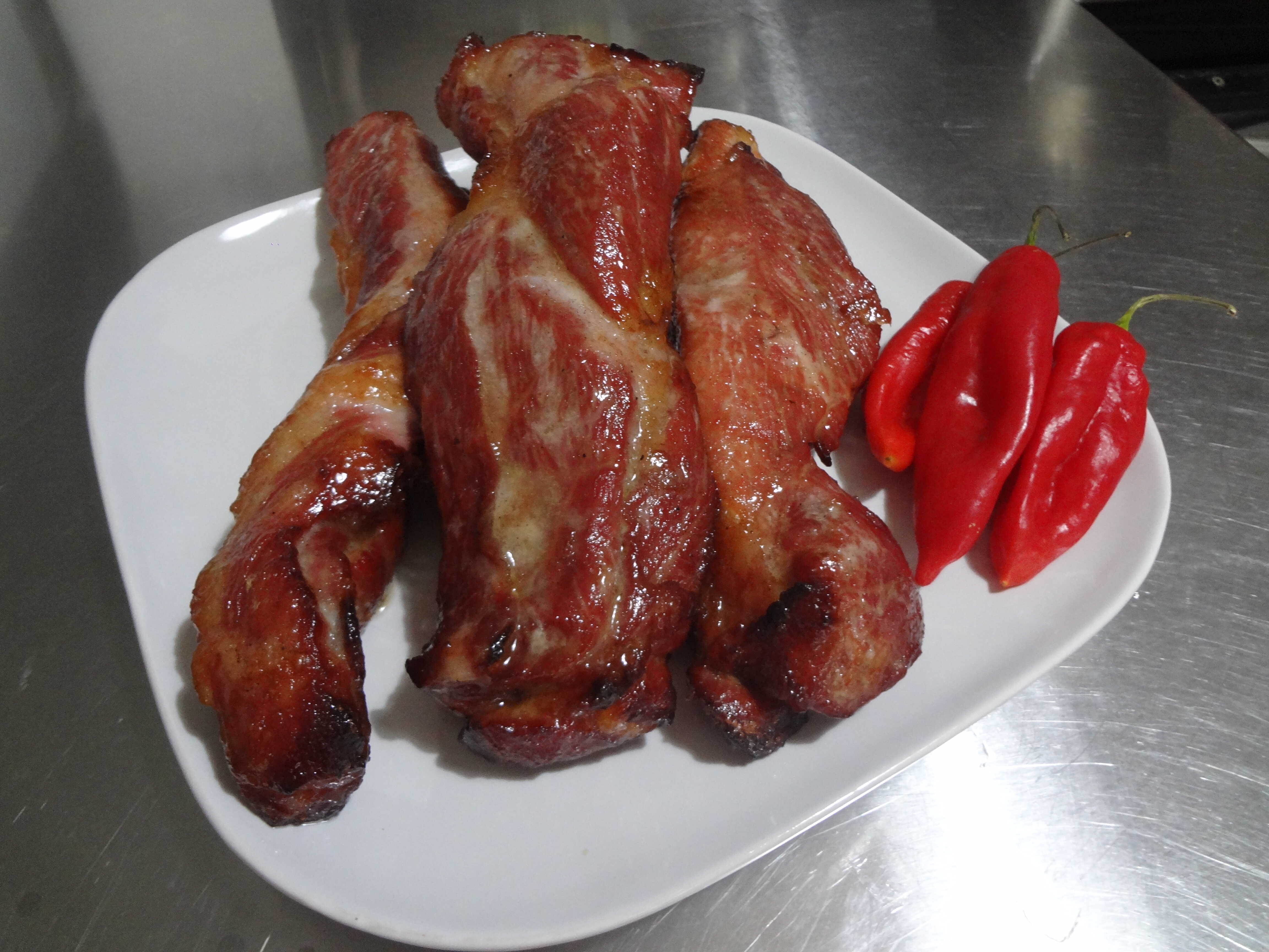 1 Kg de Lomo Chancho Asado Oriental al Peso, con juguito del chancho.