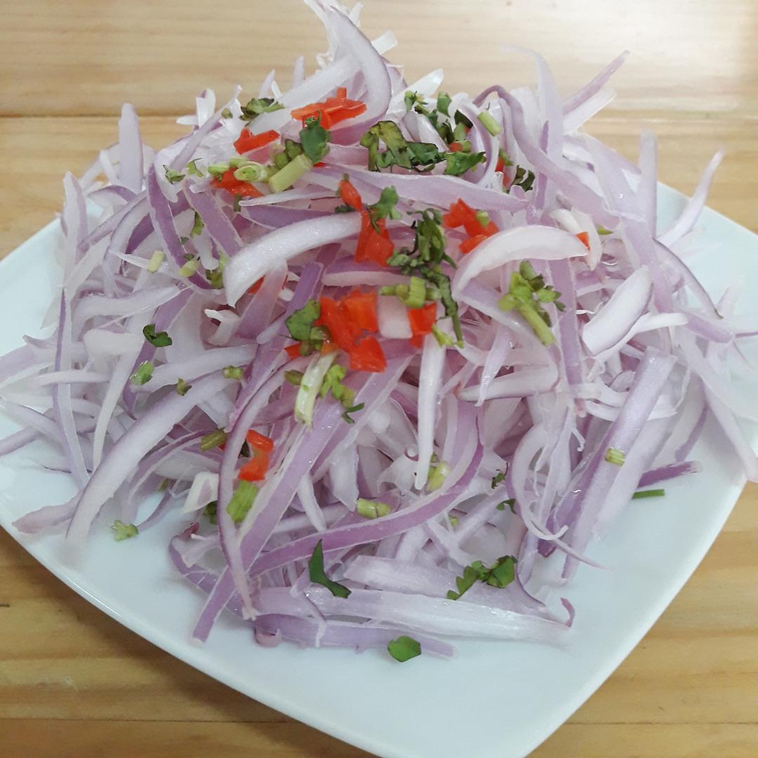 1/4 Kg Chicharrón criollo, camote y sarsa criolla.