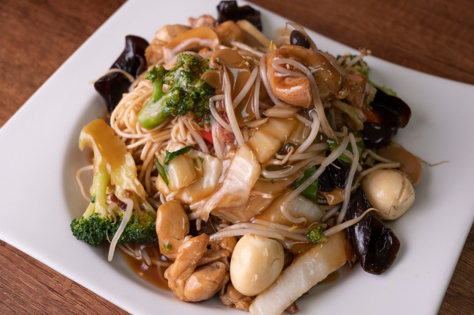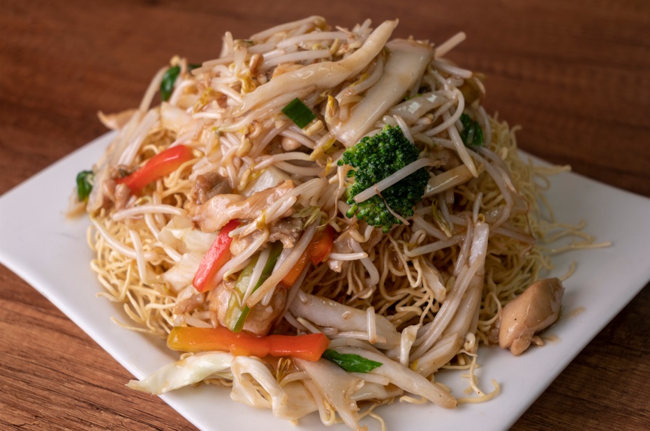 Disfruta de nuestro Tallarín Saltado de Pollo estilo Chifa, preparado al wok con salsa de soya ahumada. Incluye pollo tierno y una mezcla fresca de brócoli, holantao, frijolito chino y pimentón crujiente. ¡Sabor peruano-chino que no te puedes perder!