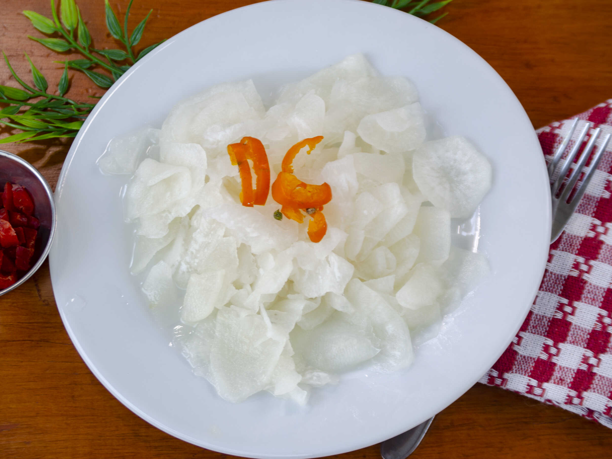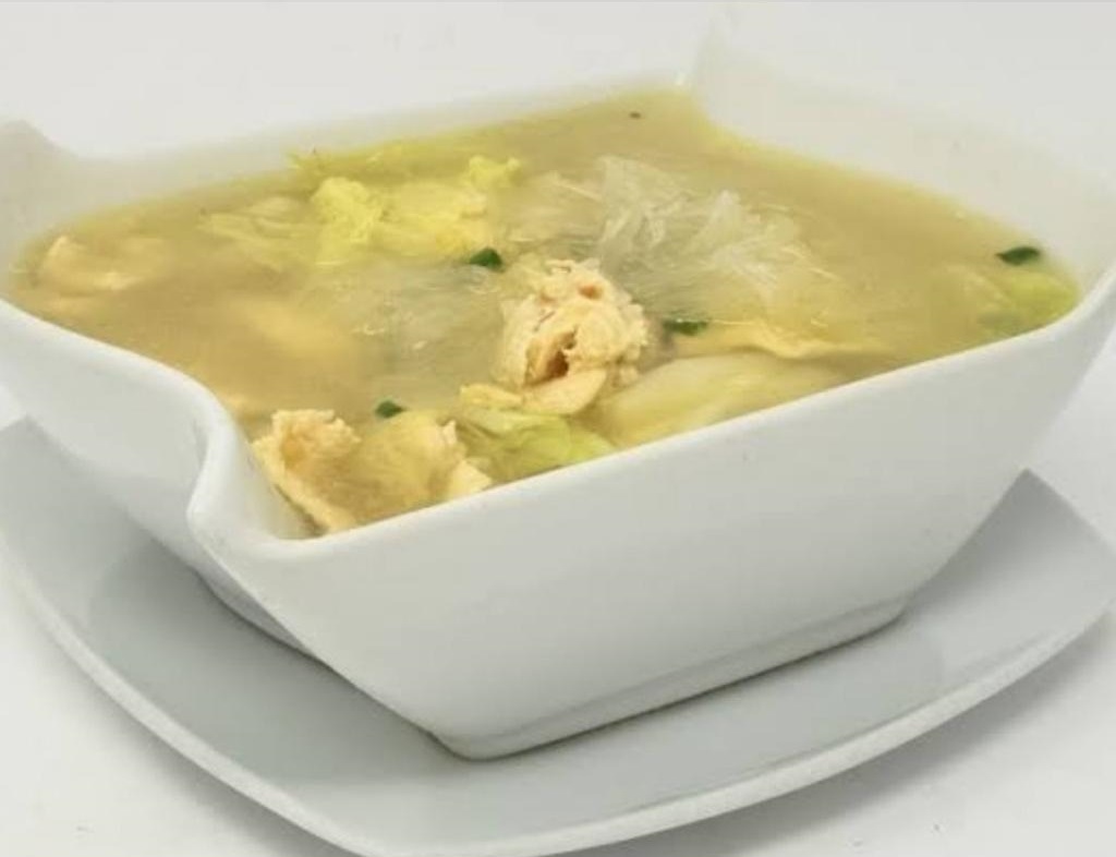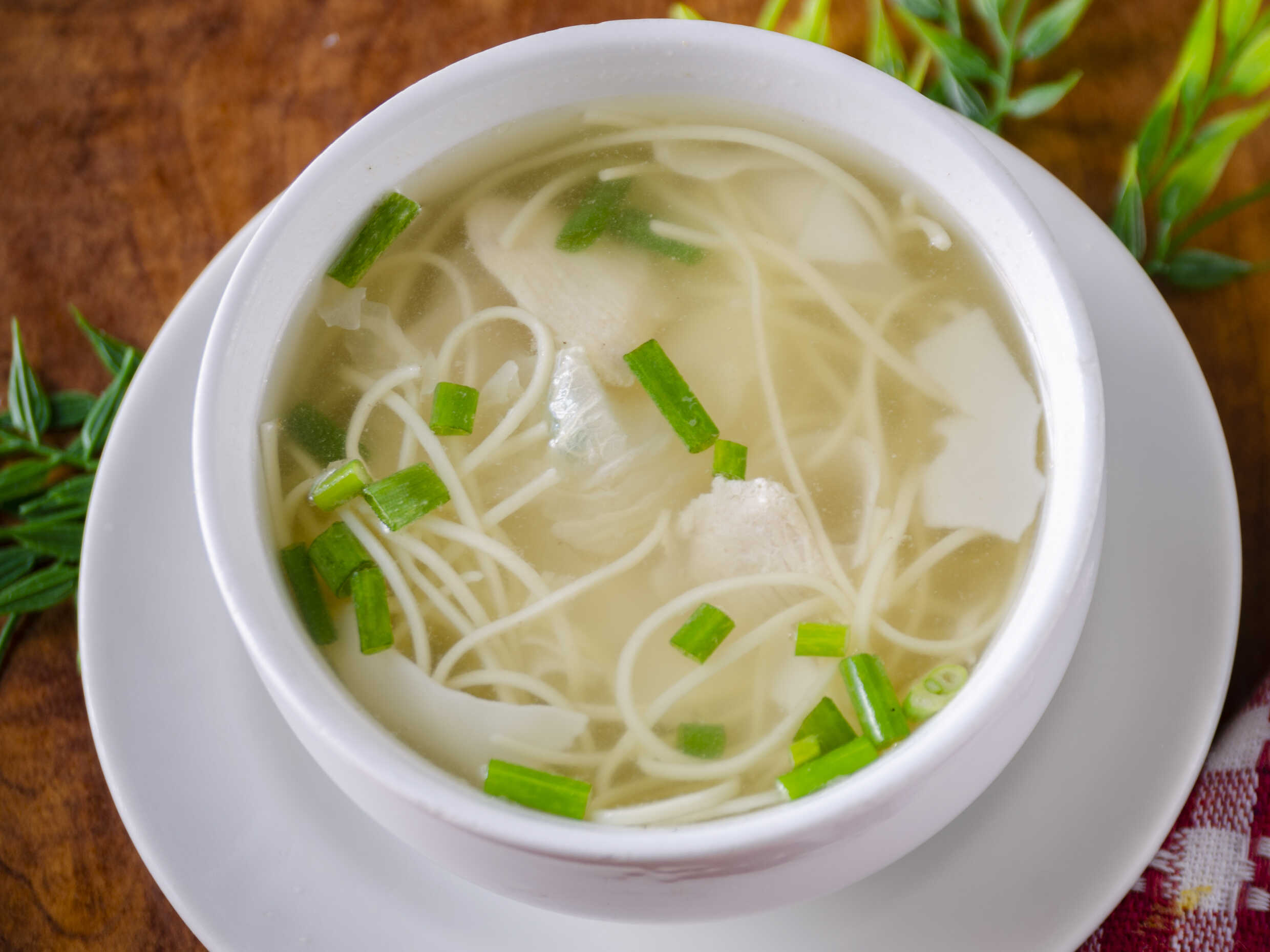 Caldo de verduras, filete de pollo y fideos de arroz.