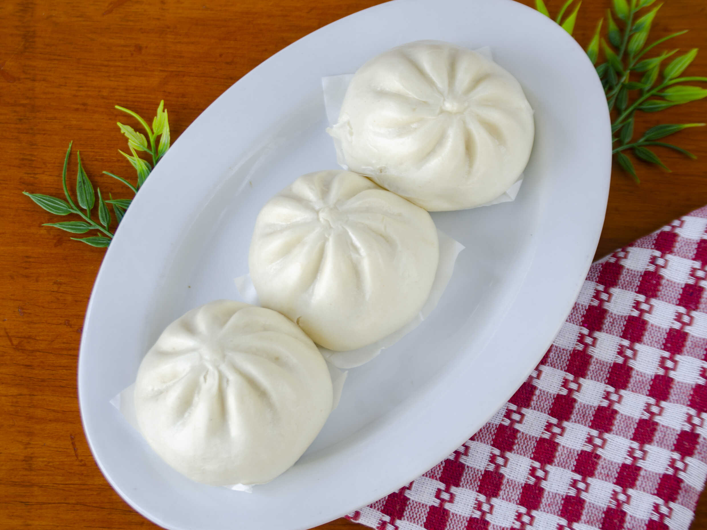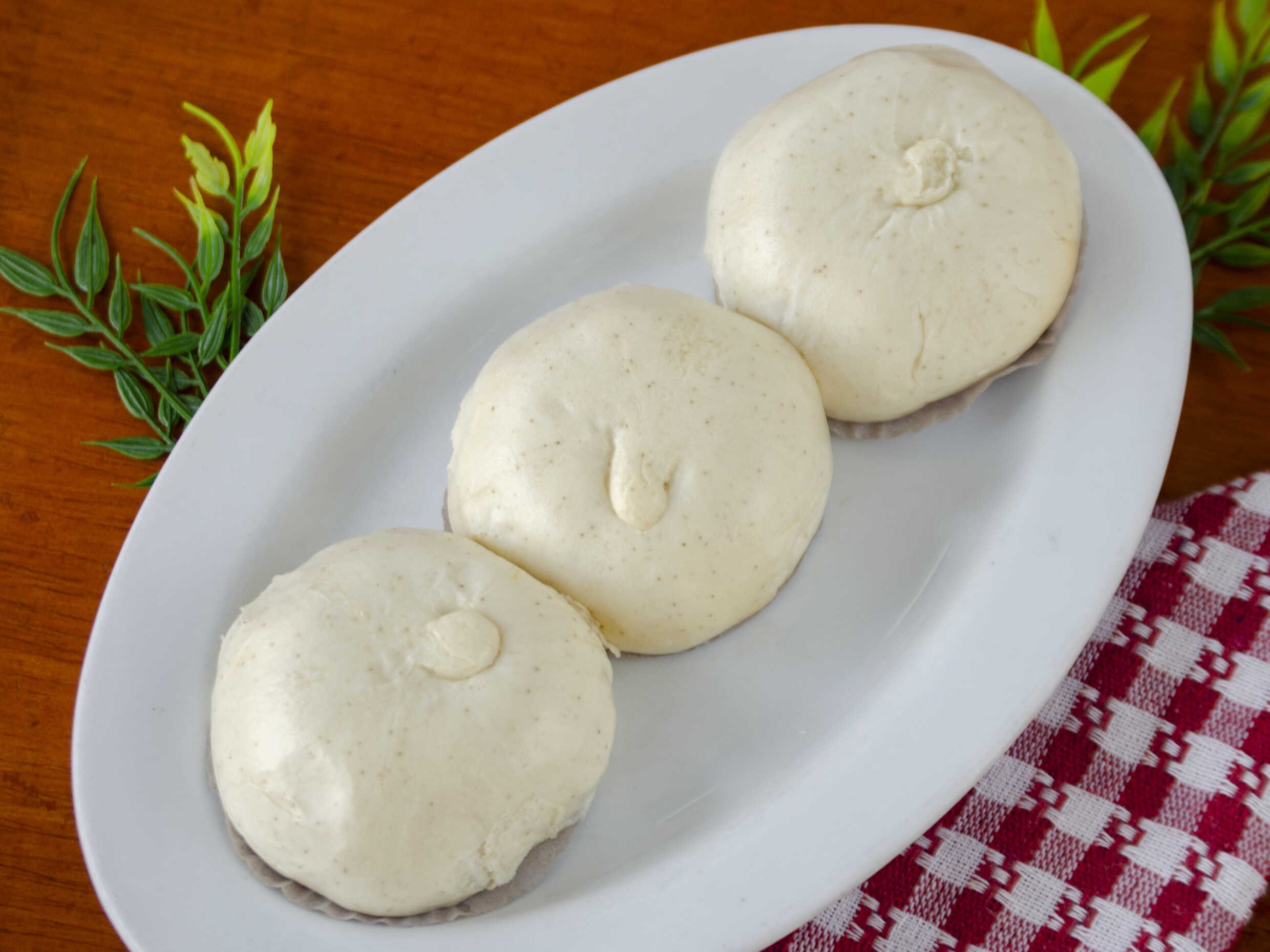 Bollitos de masa al vapor dulces con salsa de frijol.